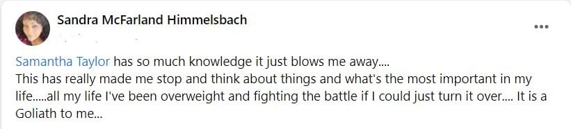 The "Finding Health in the Word" Membership includes a variety of amazing benefits to help members grow spiritually and finding health in the Word. It provides daily, weekly, and monthly access to Samantha Taylor. Members have the opportunity to connect with each other through the private Facebook group community. As a bonus, the "Finding Health in the Word" Membership will give you the 2023 Faith Driven Weight Loss Challenge Recordings ($795 Value), the Results Pack ($760 Value) consisting of the Goals Workshop with Samantha, Travel Success Guide to not gain weight, Starbucks Hacks, Restaurant Ordering Guide and Tracking your Success Daily Calendar).